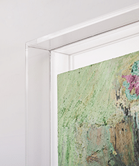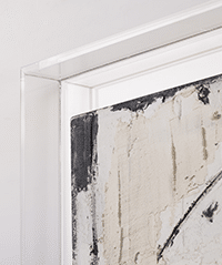 Et bien non ! C’est totalement l’inverse qui se produit. La caisse américaine en plexi atteint parfaitement son objectif : sa discrétion souligne et met en valeur le tableau de la plus belle des manières.