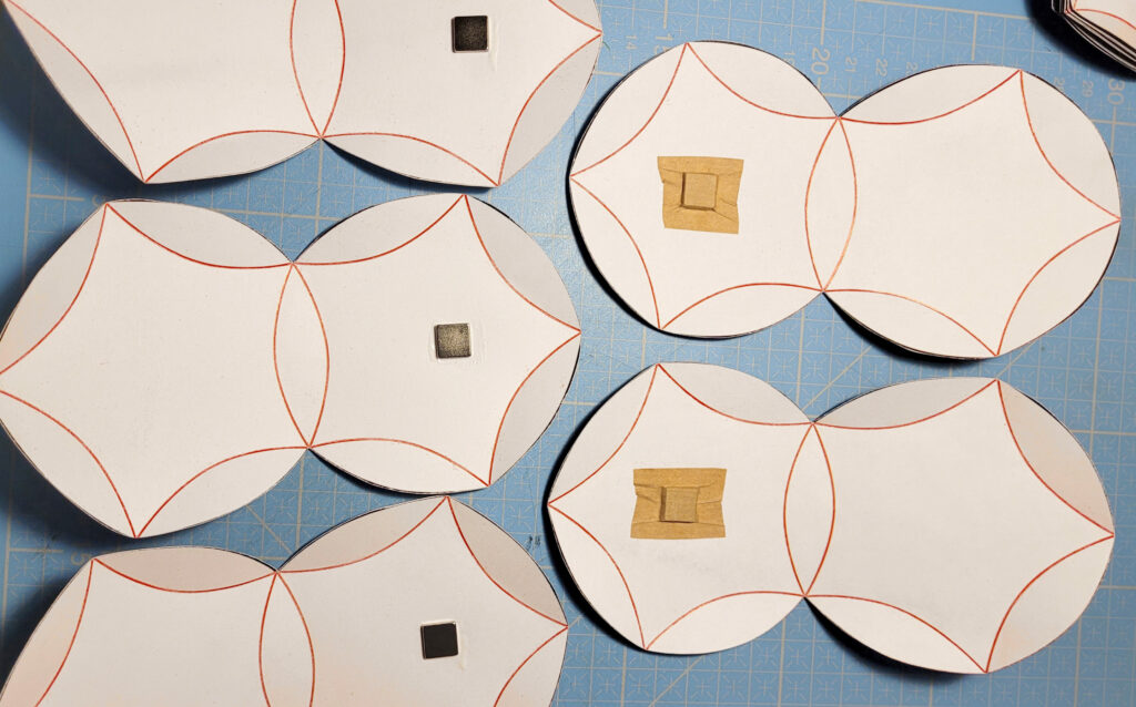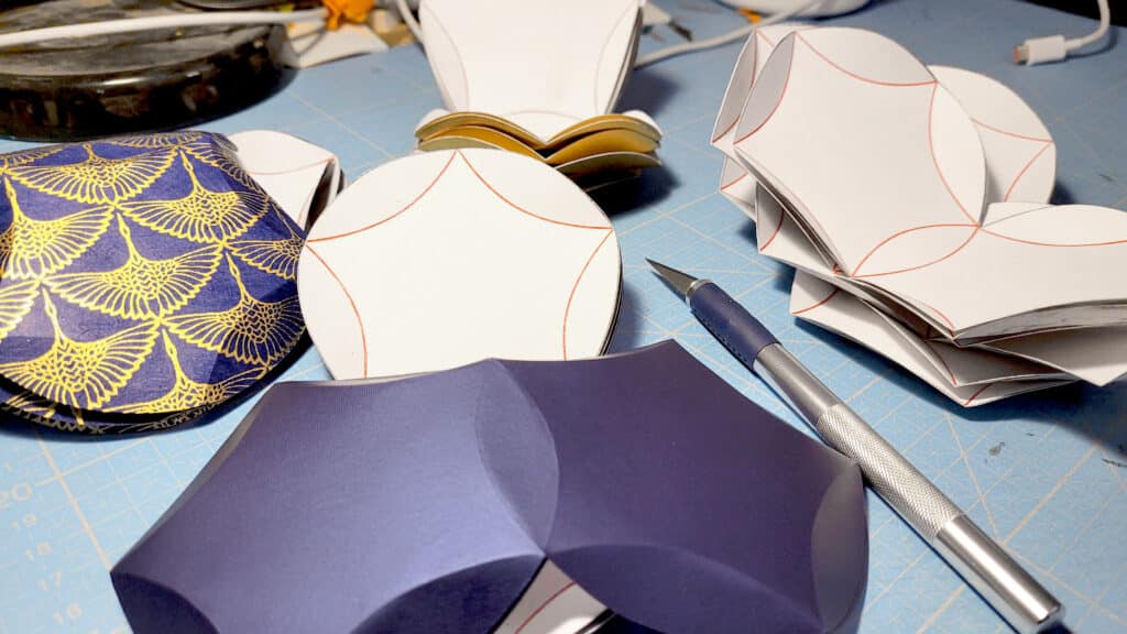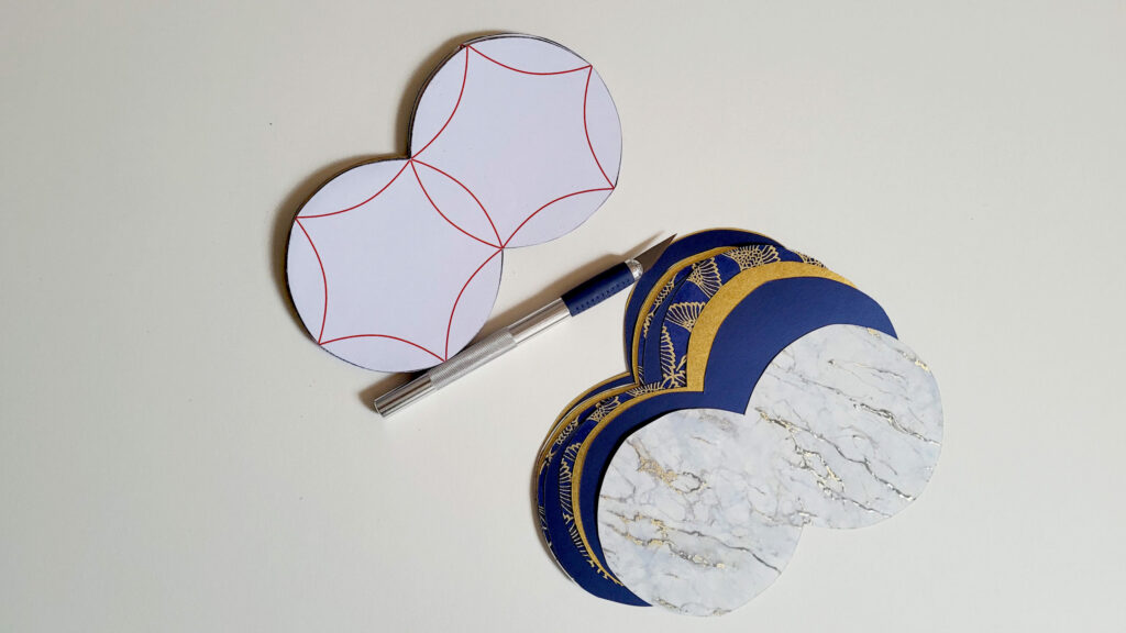 Marquer les plis sur chaque étoile, à l’aide d’un plioir ou d’un stylo bille usé (traits rouges sur le gabarit).
