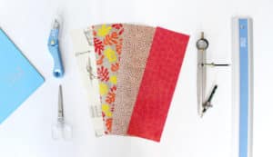 Découpez au cutter 3 bandes de 8,25 x 29 cm et 1 bande de 7,25 x 29 cm dans des papiers différents.