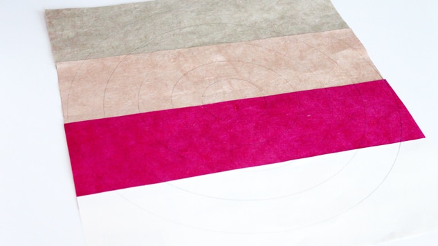 Assemblez les bandes de papier en les collant les unes aux autres sur 1 cm. Collez la bande de papier la moins large en dernier, elle doit être au-dessus. Vous obtenez donc un carré de 29 x 29 cm.