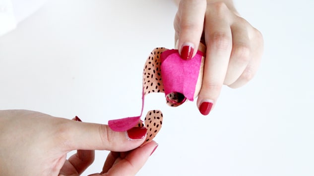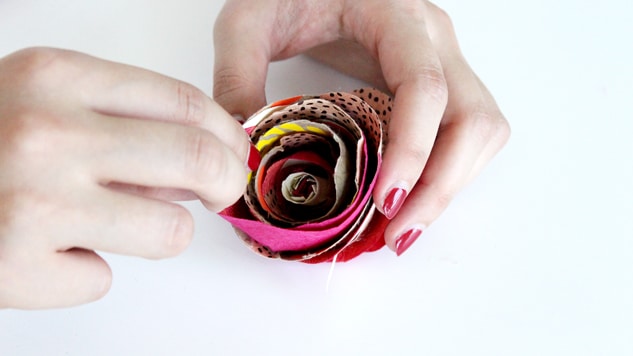 Relâchez le rouleau de papier délicatement, il va se dérouler doucement et s’ouvrir pour former la fleur. Si jamais votre papier ne se déroule pas de lui-même vous pouvez le faire à la main.