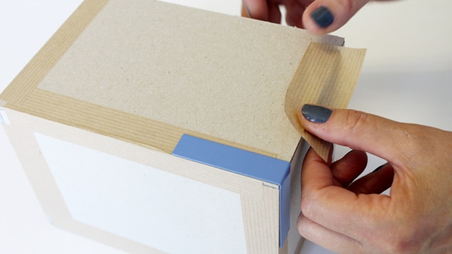 Pour le couvercle nous allons procéder de la même manière que pour la boîte. Collez puis kraftez les arrêtes pour sécuriser l’ensemble.