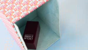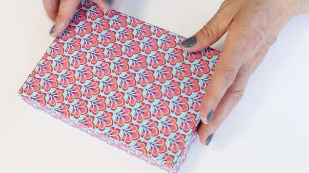 Attention quant au choix du papier, ici nous avons choisi un papier fantaisie avec un motif, mais si vous êtes débutant nous vous conseillons d’opter pour un papier uni. Cela vous permettra d’éviter la difficulté du raccord du motif entre la boîte et son couvercle.