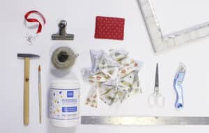 Vous pouvez les numéroter en utilisant une bande de papier contrastante ou en écrivant directement dessus à l’aide d’un feutre. Percez un trou à l’aide d’une perforatrice afin d’y glisser le ruban qui permettra d’accrocher les berlingots au cadre.