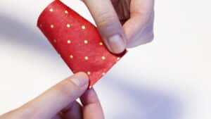 Pour créer le berlingot, encollez un des côtés de 7,5 cm et enroulez le papier sur lui-même pour former un tube. Laissez sécher quelques instants.