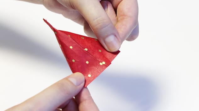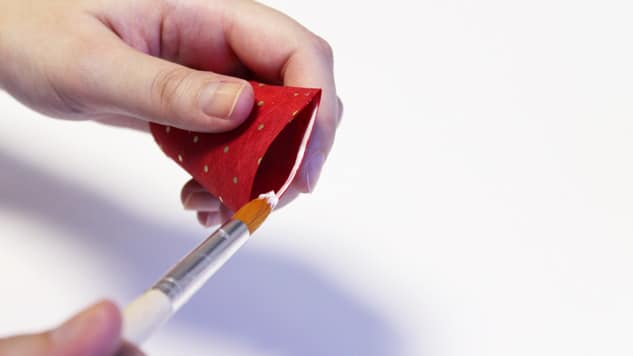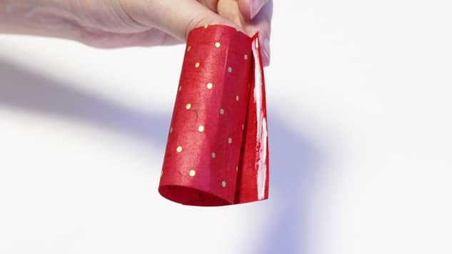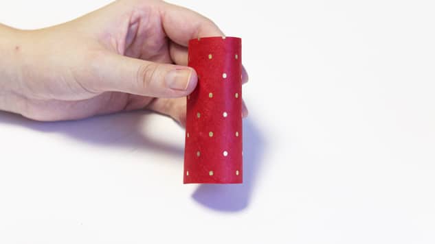 Pour créer le berlingot, encollez un des côtés de 7,5 cm et enroulez le papier sur lui-même pour former un tube. Laissez sécher quelques instants.