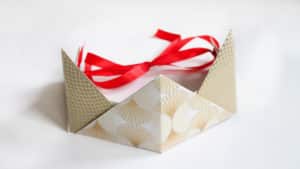 Sur un côté, rabattez les deux coins opposés vers le centre afin d’obtenir une pointe.