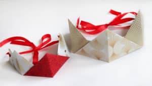 Répétez l’opération avec les deux autres carrés de papier. Vous obtenez donc 3 modules et notre couronne commence doucement à prendre forme. 😉