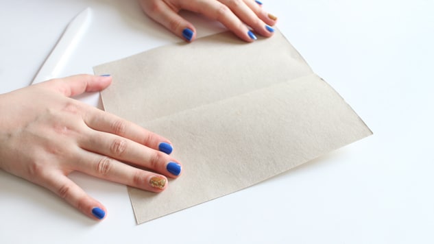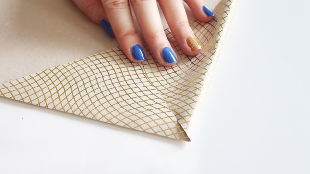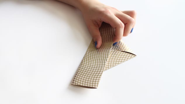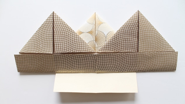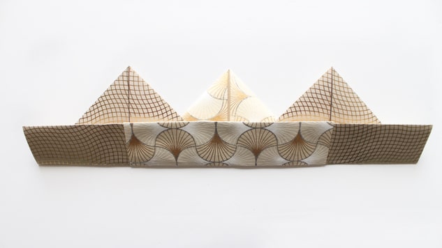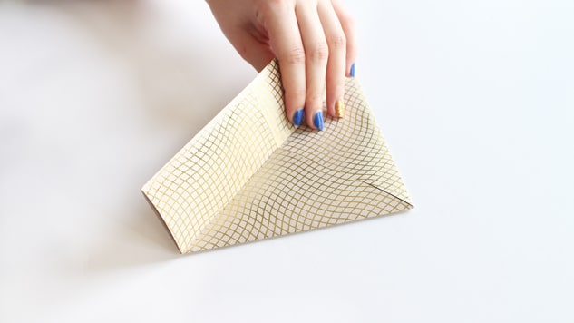 Sur un côté, rabattez les deux coins opposés vers le centre afin d’obtenir une pointe.