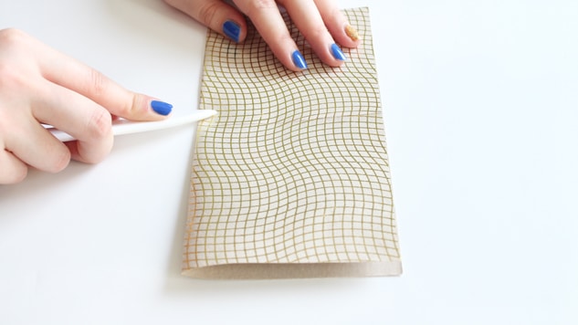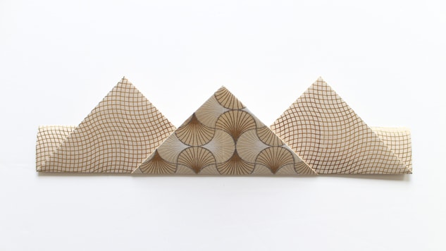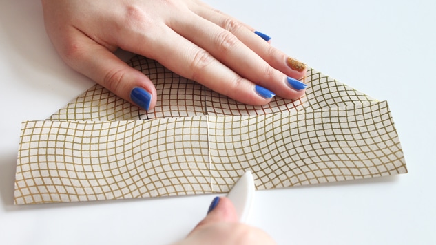 Découpez 3 carrés de 20×20 cm dans les papiers de votre choix. Puis marquez les deux médianes à l’aide d’un plioir afin d’obtenir des plis bien nets. Dépliez.