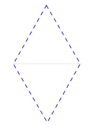 Pour réaliser la forme de base, dessinez à l’aide d’un compas 2 triangles équilatéraux dos à dos qui formeront un losange. Nous avons choisi ici de faire des triangles de 14 cm de côté mais vous pouvez adapter la taille des losanges en fonction de vos besoin, plus ou moins grands selon l’effet que vous souhaitez apporter à votre mur (pour plus de simplicité, vous pouvez aussi télécharger et imprimer le patron ci-joint).