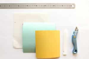 – 1 ou plusieurs feuilles de papier, recto verso ou non, ici nous avons utilisé : Papier Flanelle vert menthe, papier Flanelle jonquille et papier opaline plumetis.