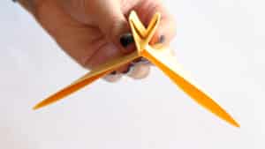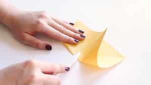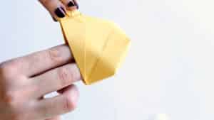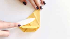 Nous allons formez la tête de la poule en rentrant le pli extérieur vers l’intérieur. Il s’agit de le replier sur lui-même.