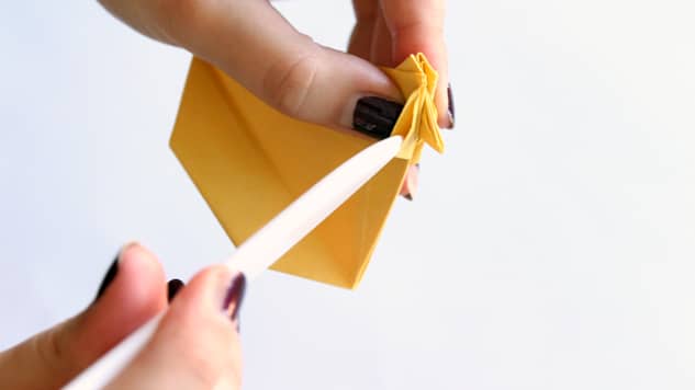 Pour former le bec de la poule, renouvelez l’opération, mais vers l’extérieur cette fois. Et voilà votre poule de Pâques est presque finie ! 😉