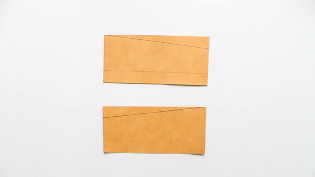 Pour un peu de fantaisie nous allons faire une découpe en biais sur un des bords de nos petites poches, comme sur la photo ci-dessus.
