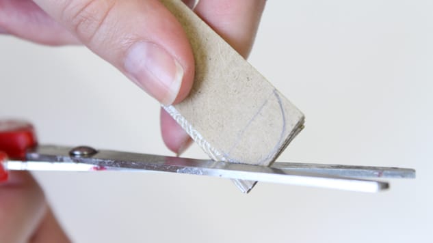 Donnez une forme à un des côtés des bandes. Servez-vous de la première bande pour reporter la découpe sur les deux autres.