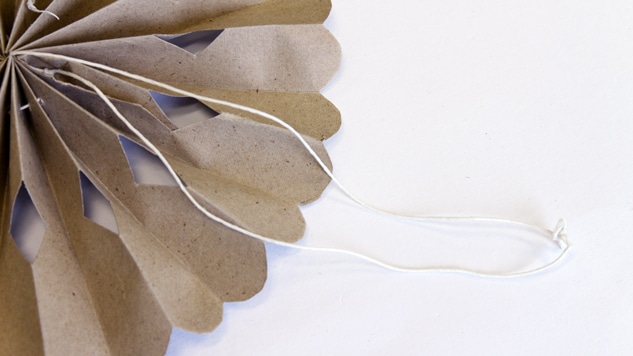Tirez délicatement sur le fil pour resserrer le cœur de la rosace puis faites un nœud bien serré. Vous pouvez laisser dépasser le fil et faire un nœud à l’autre extrémité pour faciliter l’accrochage.