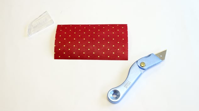 Commencez par découper un rectangle de 15×8,5 cm dans le papier de votre choix. Puis pliez ce rectangle en deux dans le sens de la hauteur.