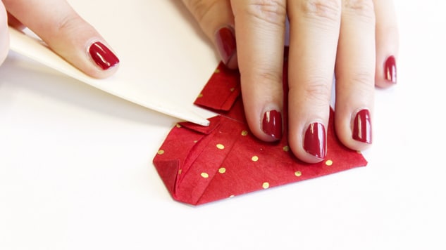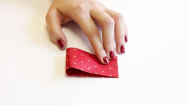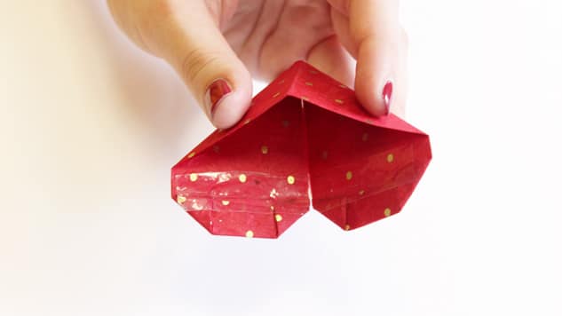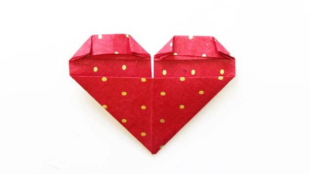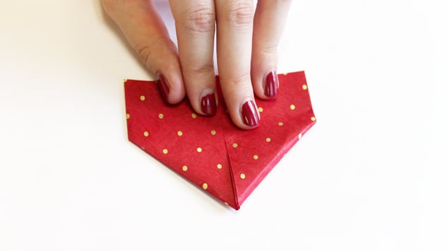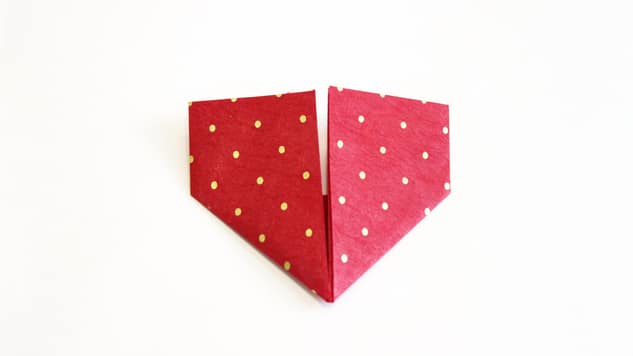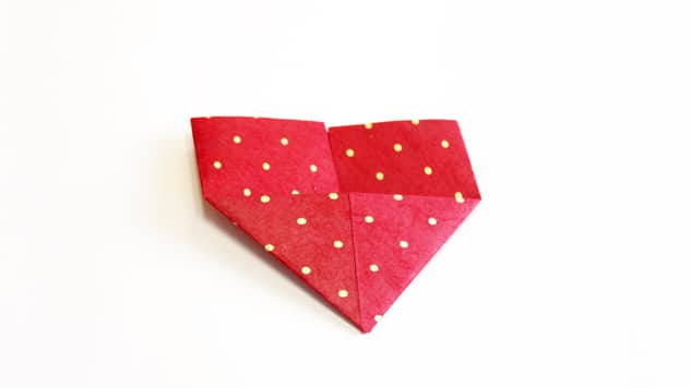 Retournez votre pliage. Puis pliez les deux extrémités. Votre cœur commence à prendre forme !