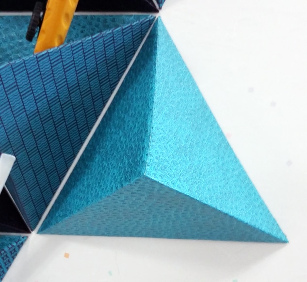 Coupez la forme ainsi obtenue et incisez au niveau du triangle équilatéral (en orange sur le schéma).