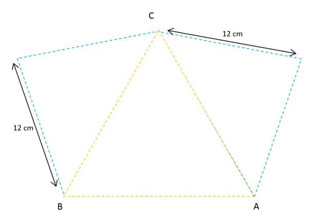 Tracez ensuite à partir de chaque côté un triangle de 12 cm de côtés.