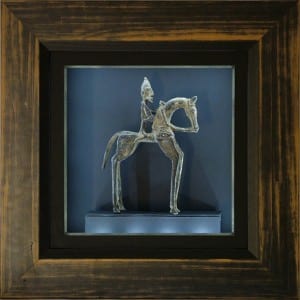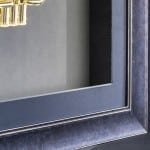 Un simple socle posé et fixé sur le fond de la boite, sert de piédestal à l’objet encadré.