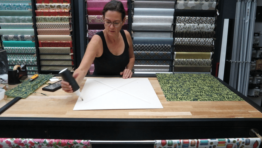 7. Poser une masse sur le haut de l’affiche et mettre de la colle sur les deux coins les plus proches de vous. Faites l’inverse.