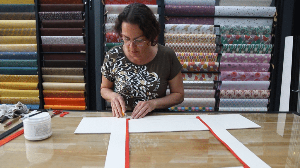 2. Tracez une marge de 7cm sur votre cartonnette et ouvrez-la en suivant le tracé à l’aide du cutter et de la règle lourde.