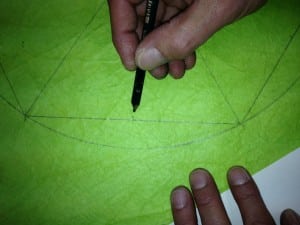 Tout d’abord collez deux feuilles de papier Lokta Lamali l’une avec l’autre afin d’obtenir un papier recto-verso.