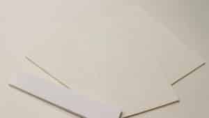 Encollez l’une des cartonnettes au rouleau mousse et la coller sur l’envers du papier Kahori ivoire – or réf. 24283. Lissez le papier au plioir pour chasser les bulles et les plis. Coupez le papier dépassant sur les 4 cotés. Et mettre en attente sous presse.