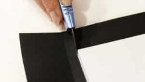Encollez le pavé en carton mousse sur l’envers du papier Filigrane noir. Marquez les arêtes du carton sur le papier.