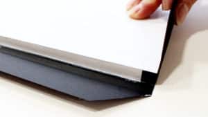 Collez la cartonnette sur le carton. Centrez et collez le pavé sur la cartonnette. Mettre sous presse.
