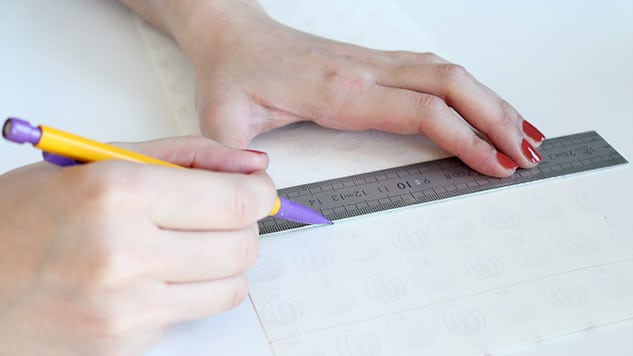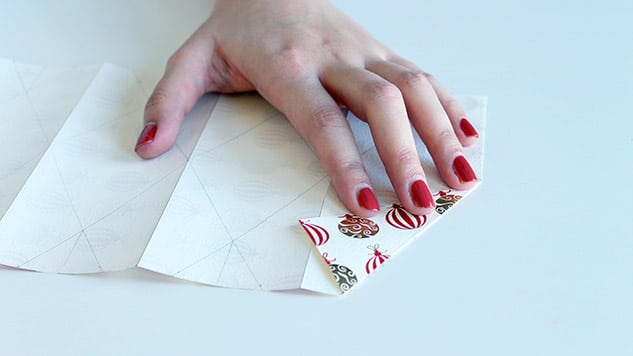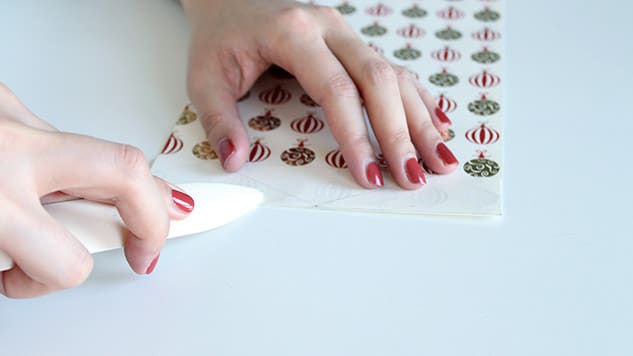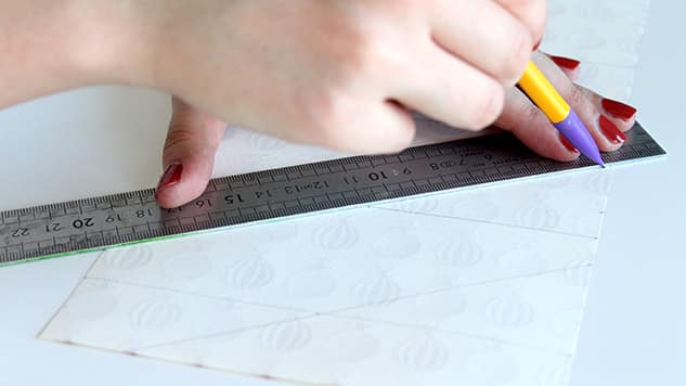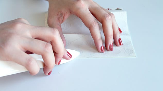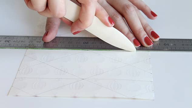 Tracez les traits de pli en suivant le patron fourni ci-dessus. Puis marquez tous les plis à l’aide d’un plioir afin de faciliter le pliage.