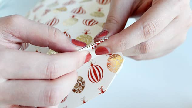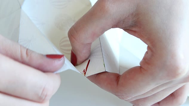 Superposez les deux extrémités de votre bande de papier pour faire coïncider les plis et voir où appliquer la colle.