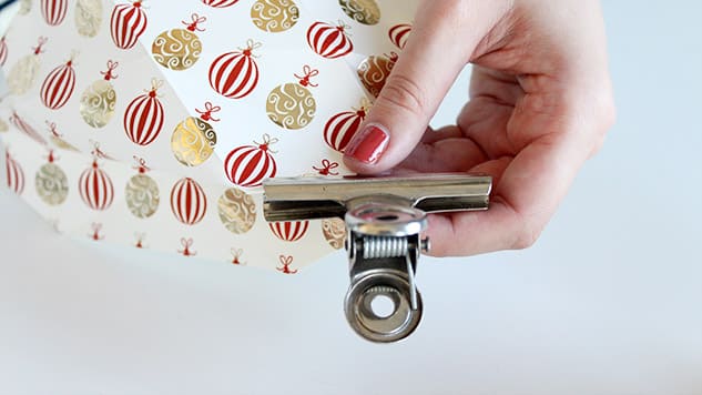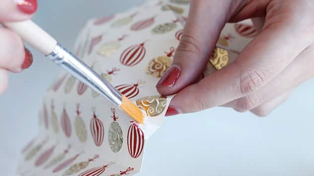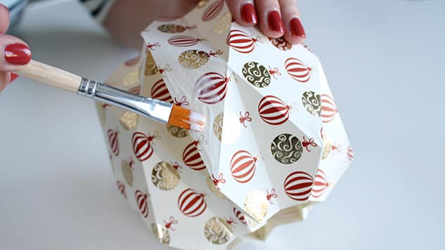 Appliquez de la colle à l’aide d’un pinceau dans tous les petits plis triangles que nous venons de plier. Puis maintenez les plis à l’aide de pince le temps que la colle prenne.